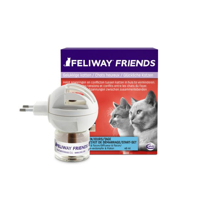 Feliway Friends ® is een synthetische kopie van het gezichtsferomoon van de kat. Dit feromoon wordt gebruikt door katten om hun territorium als veilig te markeren.